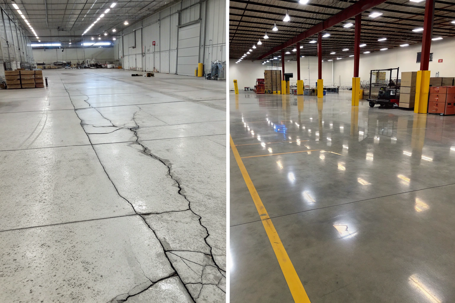 Heavy forklift traffic and constant movement create wear patterns that restoration handles perfectly. Minimal downtime keeps operations running while improving safety and appearance.