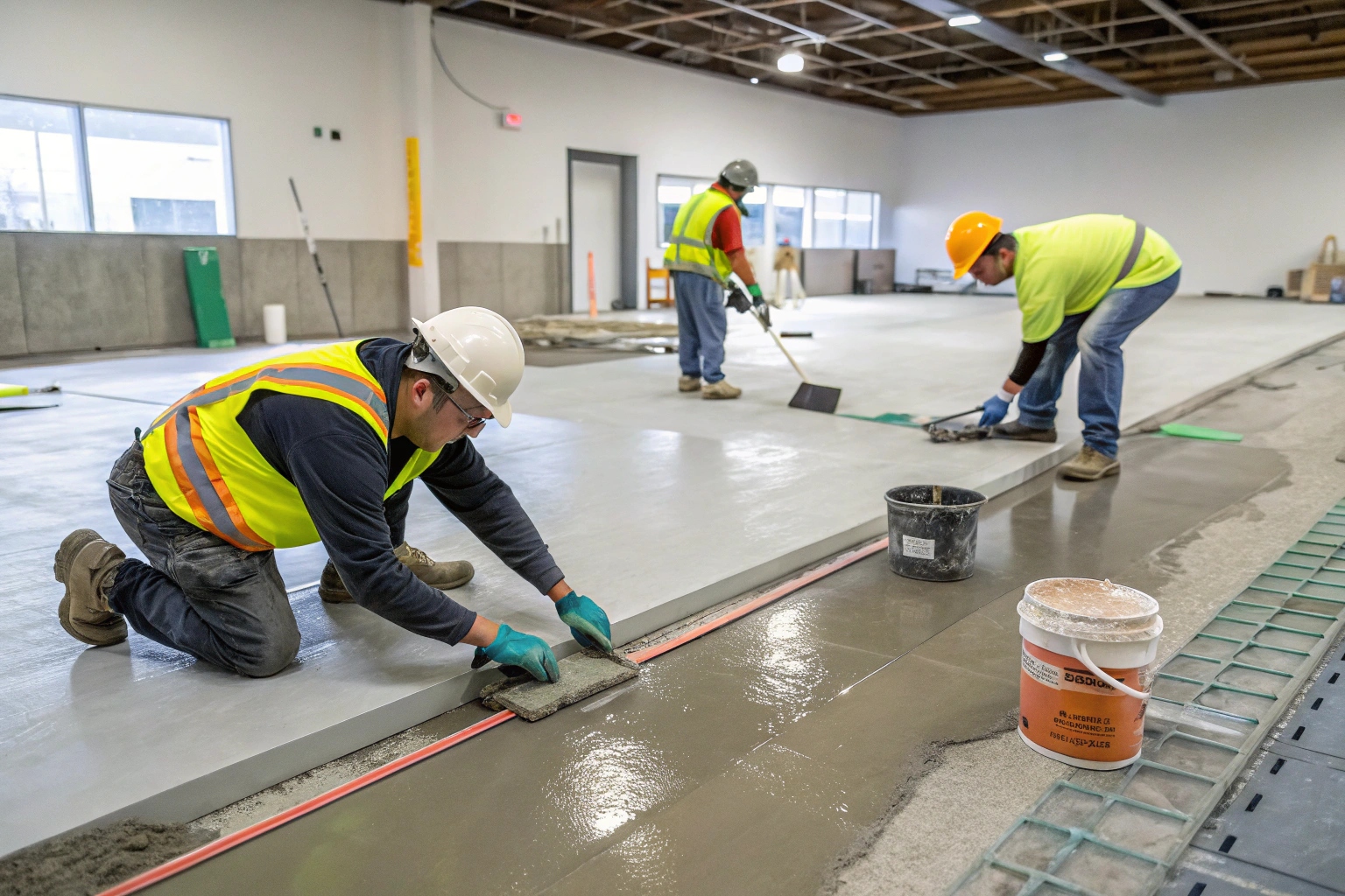 Light foot traffic is usually possible in 12-24 hours. Full service loads typically require 48-72 hours cure time. We schedule cure times based on your operational requirements.