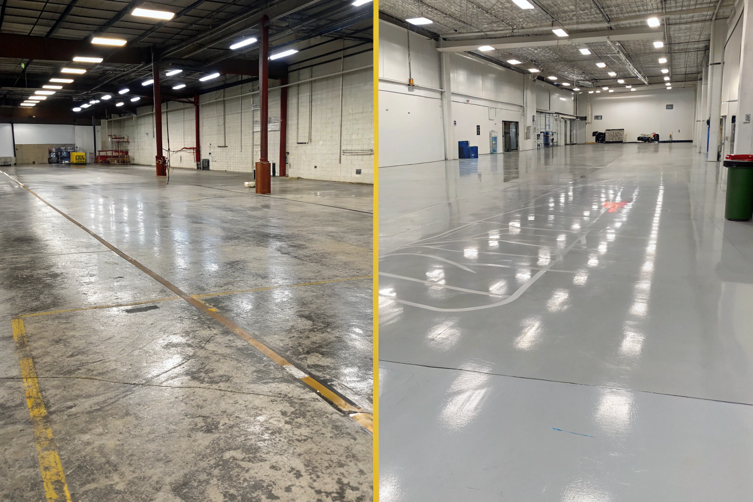 We handle all surface preparation. You’ll need to clear the area of equipment and inventory. We’ll provide a detailed preparation checklist.